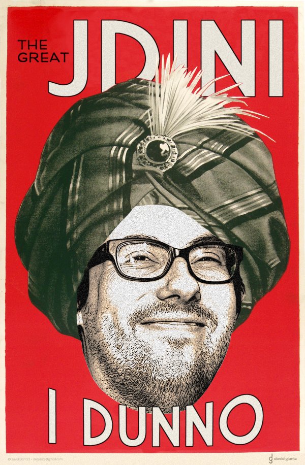 JD reprised his (hit) role as The Great JDini, “a mush-mouth nerd with the uncanny ability to read funny lines badly,” this morning with a slew of new predictions.