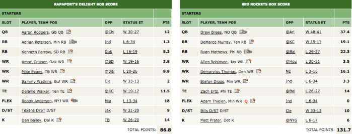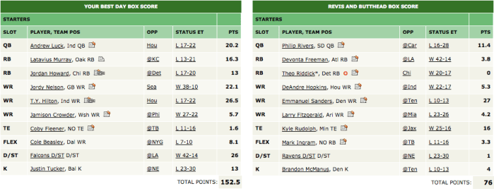 Check out the box score of Jason and Scott’s matchup:
