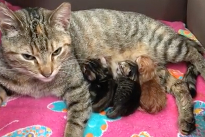 Wednesday morning as a rescue cat named Sophie gave birth to a litter of